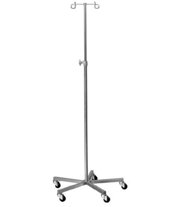 A drip stand with a metallic base is a sturdy IV pole used to hold intravenous fluid bags during medical treatments. The metallic base, often made of stainless steel or chrome-plated steel, provides strong stability and durability, making it resistant to corrosion and easy to clean. Typically designed with a wide, weighted base or multiple legs, it ensures the stand remains steady and safe during patient care. The drip stand usually features adjustable height and multiple hooks for hanging IV bags, allowing for flexible use in hospitals, clinics, and home care settings.